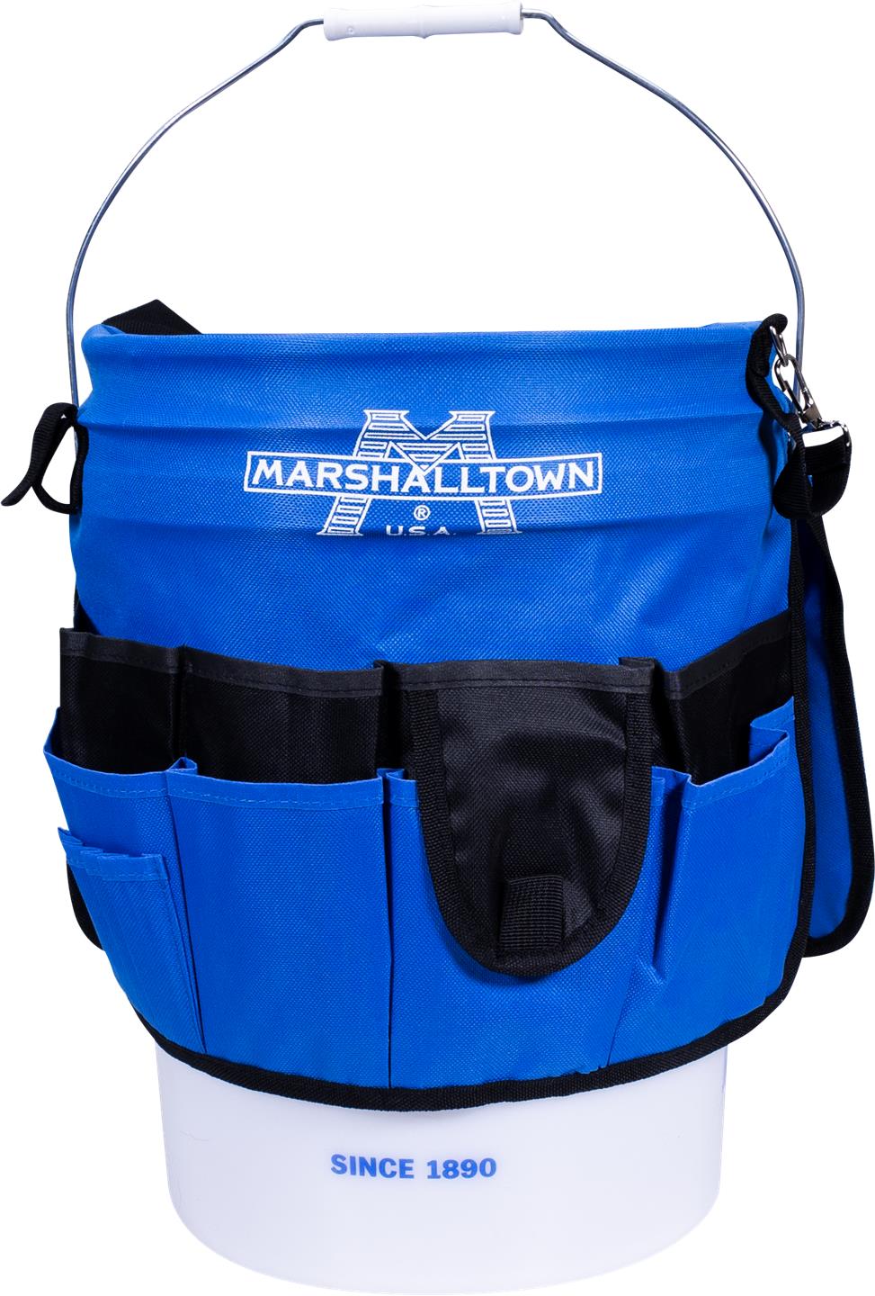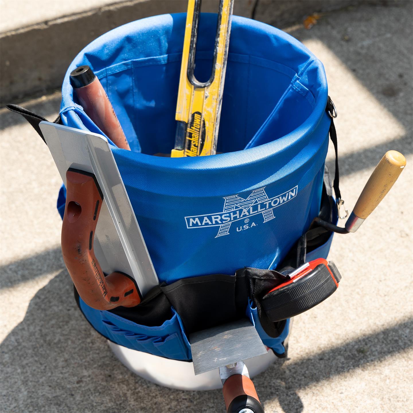 | De MARSHALLTOWN Super Tas past perfect over een standaard 5-gallon emmer en helpt je al je gereedschap georganiseerd te houden. Gemaakt van waterbestendig nylon, met: